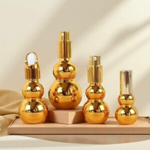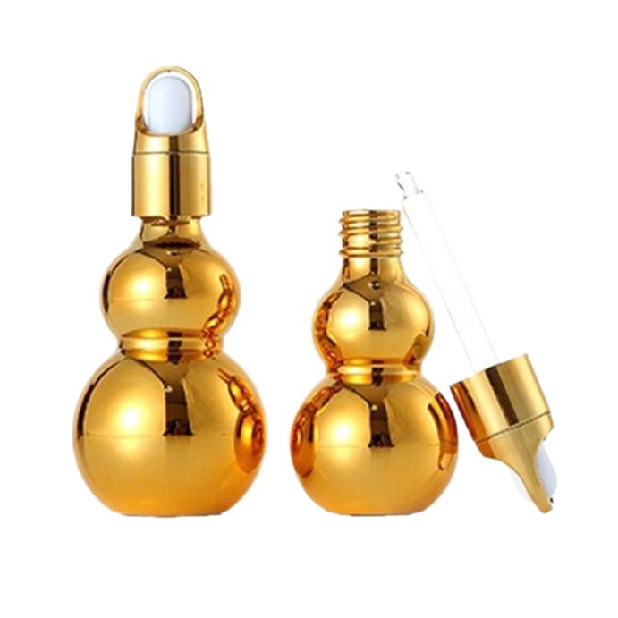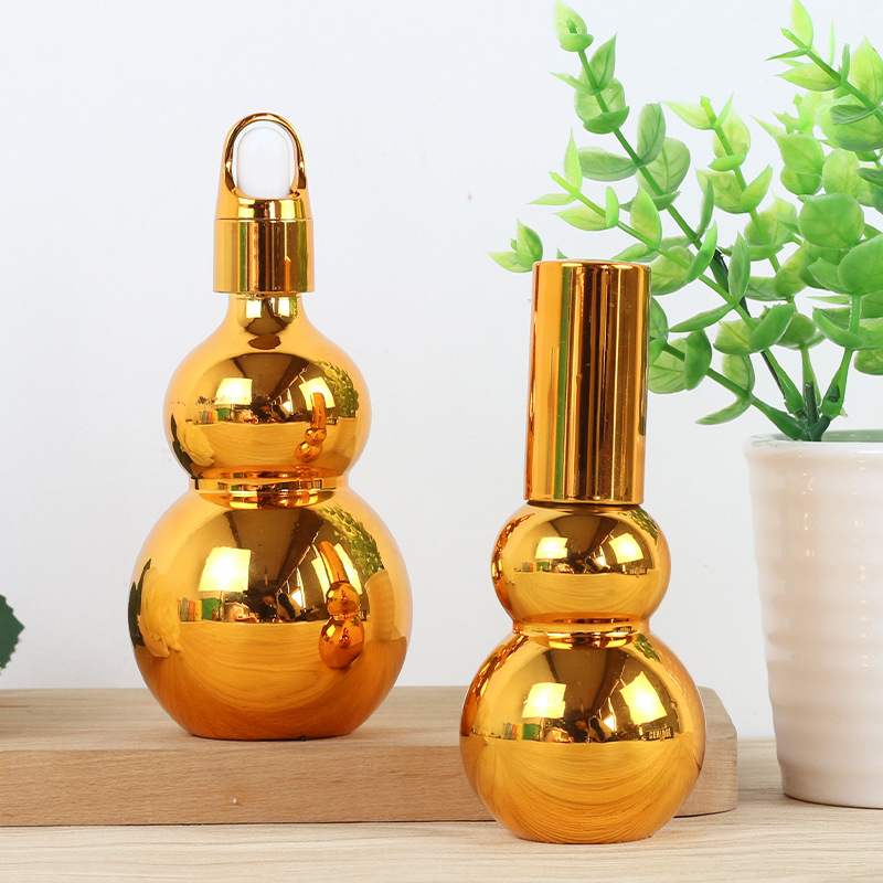 Chai tinh dầu thủy tinh hình kết quả bầu đôi mạ vàng xuyên biên giới, chai xịt ép, chai bảo tinh chất, chai lotion, chai lăn bi mẫu mới nhất