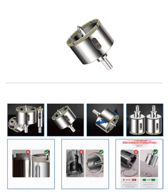 Khoan chính xác, không mẻ gạch: Đầu khoan thiết kế đặc biệt giúp khoan lỗ mịn, không làm vỡ cạnh, không sứt bề mặt.