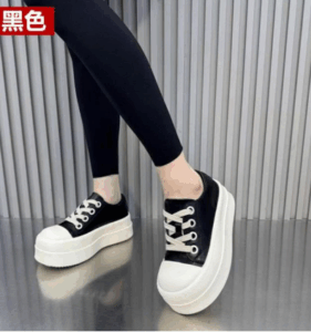 Giày bánh mì cá tính giày vải giày cột dây giầy đế bằng giày cao 6cm trắng đen mới