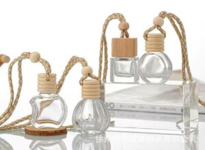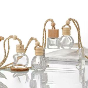 Nước hoa xịt phòng ô tô bằng thủy tinh cao cấp có dây treo, đèn khuếch tán tinh dầu ô tô có nắp gỗ, chai đựng nước hoa, chai rỗng, nguồn cung cấp độc quyền mẫu mới nhất